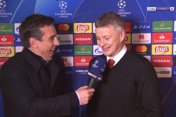 曼联足总杯出局,也让内维尔惨遭解说搭档卡拉格的「鞭尸」。 利物浦名宿找到1月份内维尔的一条社交网站发帖,「周四晚的比赛(指曼联参加的欧联杯),也不是那么糟糕」,卡拉格回应说:「特别是当你们在其他赛事都被干掉了(got fuck)之后!」