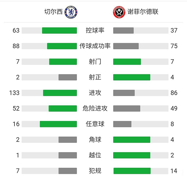 全场比赛结束,切尔西在主场2-0击败谢菲联晋级。